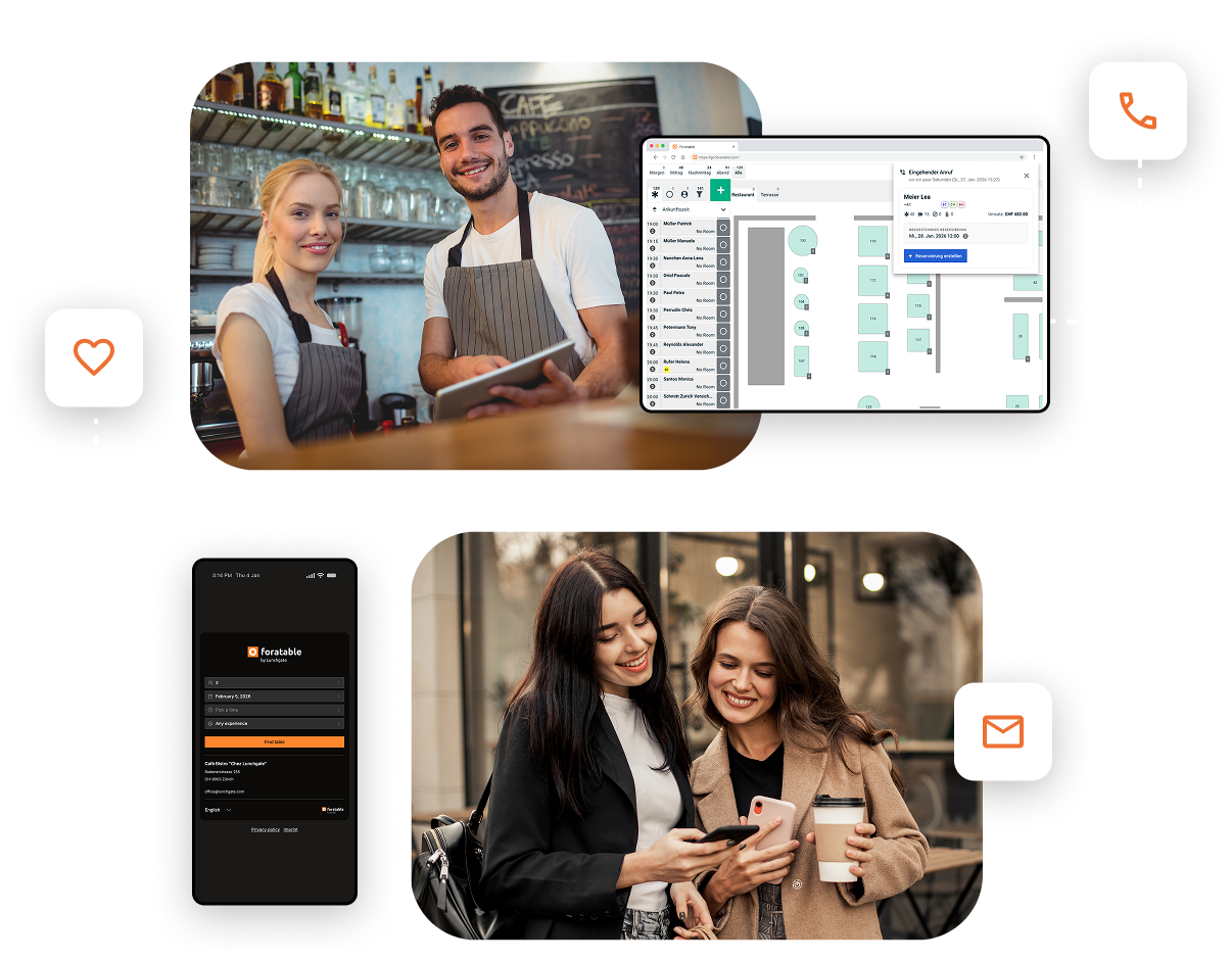 Sie setzen in Ihrem Restaurant/Hotel ein Kassensystem (POS) oder ein Property Management System (PMS) ein? Wir sorgen mit unserer Integrationen zu externen Systemen dafür, dass Ihr POS, PMS, CRM, etc. über Schnittstellen mit foratable kommunizieren kann